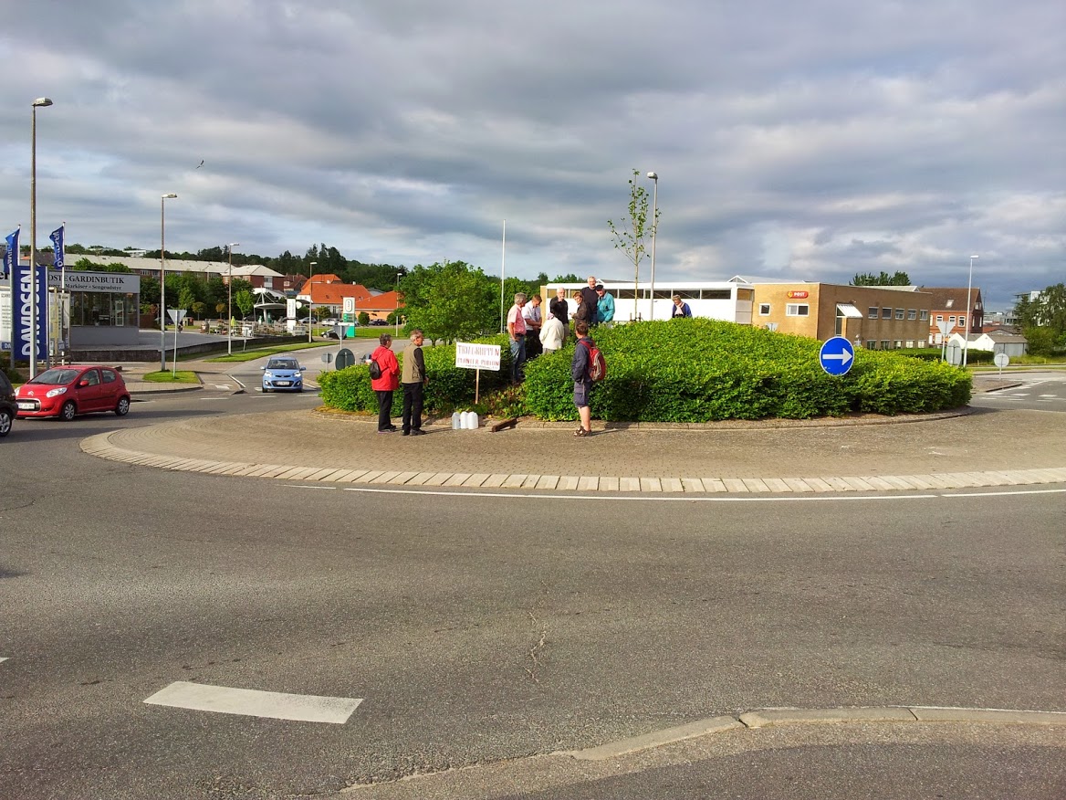 Platan plantet i rundkørslen ved Kvickly i Haderslv, den 27. maj 2014 i forbindelse med generalforsamlingen i Trægruppen.